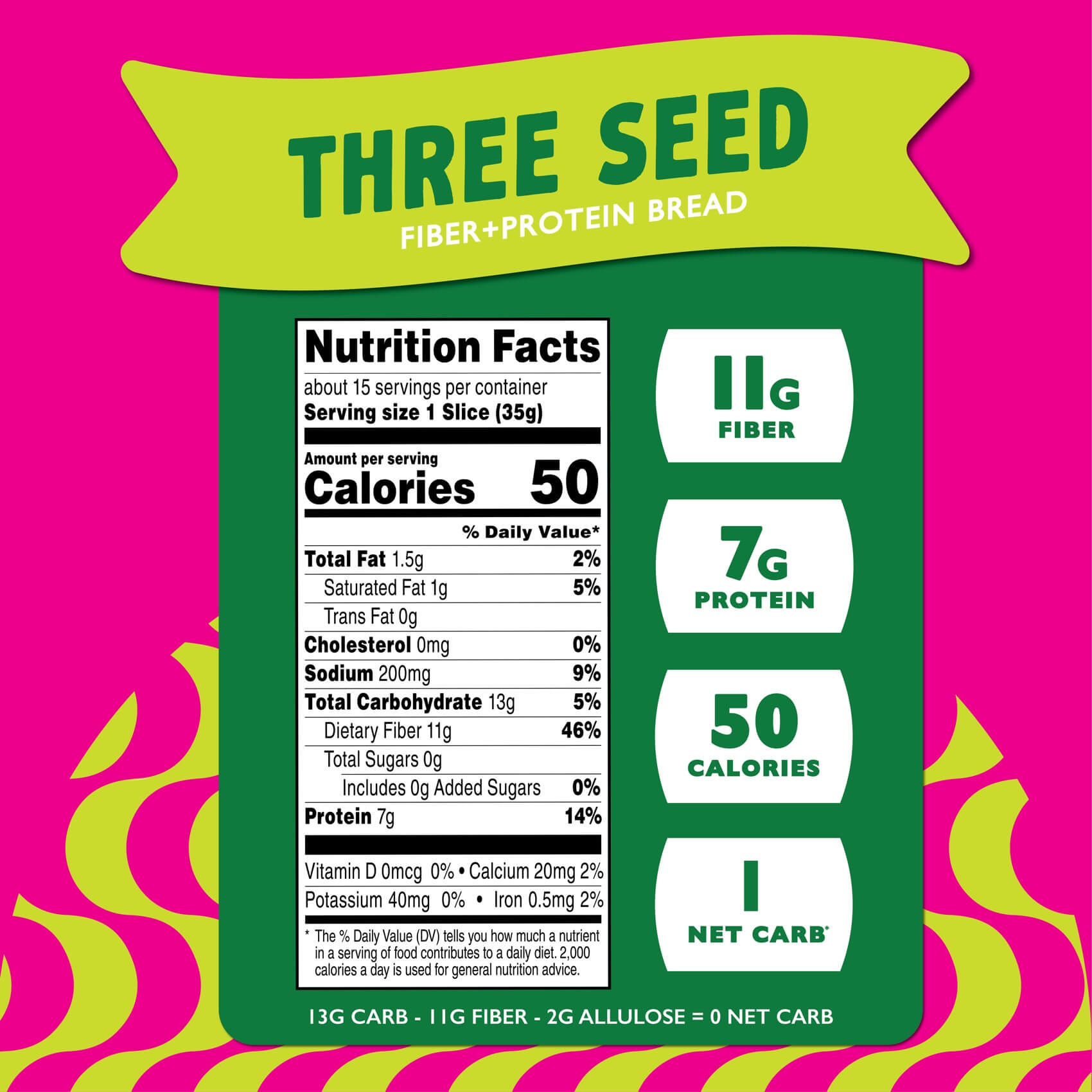 Choose any flavor, and enjoy fresh-baked goodness with 7g protein, 11g fiber + 0-1 net carb per slice.